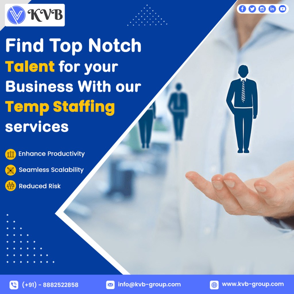 Navigate workforce flexibility with KVB Staffing Solutions, your gateway to effective temp staffing solutions. Our tailored approach ensures timely access to skilled temporary professionals, optimizing your workforce according to project demands. Trust KVB Staffing Solutions for seamless temp staffing services that enhance your operational agility. For more details about our services, visit https://www.kvb-group.com/web/tempstaffingservices/ or mail us at: info@kvb-group.com or contact us at +91-8882522858.